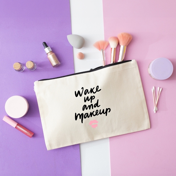 Płaska kosmetyczka z wytrzymałego drelichu, idealny dodatek na co dzień. Sitodrukowy nadruk nadaje jej charakteru, a plastikowy suwak zapewnia wygodę użytkowania.
