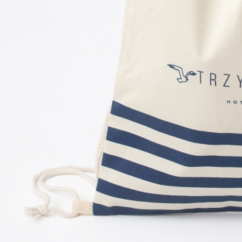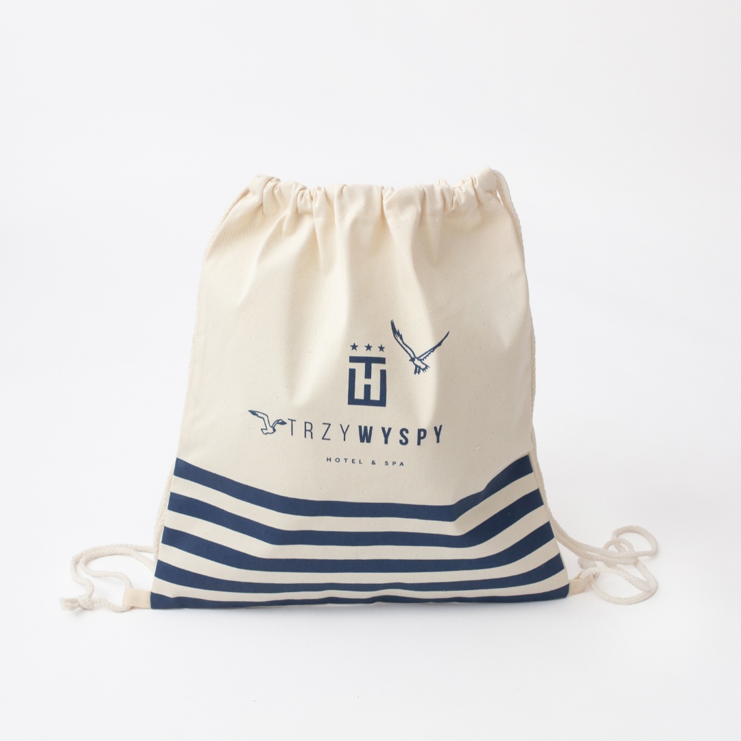 Dla hotelu Trzy Wyspy stworzyliśmy stylowy workoplecak z naturalnego drelichu o gramaturze 280 g. Nadruk sitodrukowy doskonale podkreśla wakacyjny klimat i nawiązuje do nadmorskiego charakteru miejsca.